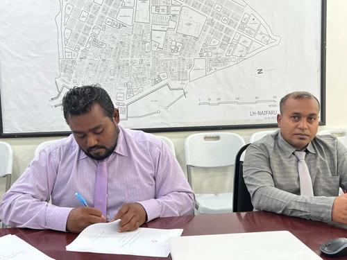 ތިމާވެއްޓާބެހޭ މިނިސްޓްރީގެ ބޭފުޅުންނާއެކު ނައިފަރު ކައުންސިލްގައި މިއަދު ކުރިއަށް ގެންދެވުނު މި ރަސްމިއްޔާތުގައި އެއަރ ކޮލިޓީ މޮނިޓަރިންގ ސެންސަރ ޙަވާލުކުރުމަށް މިނިސްޓްރީ އޮފް އެންވަޔަރަމަންޓް، ކްލައިމެޓް ޗޭންޖް އެންޑް ޓެކްނޮލޮޖީ އާއި ފާދިއްޕޮޅު ނައިފަރު ކައުންސިލާ ދެމެދު ވެވޭ ފަހުމުނާމާގައި ކައުންސިލްގެ ފަރާތުން ސޮއިކުރެއްވީ ނައިފަރު ކައުންސިލްގެ ރައީސް މުޙައްމަދު ރަޝީދުއެވެ.